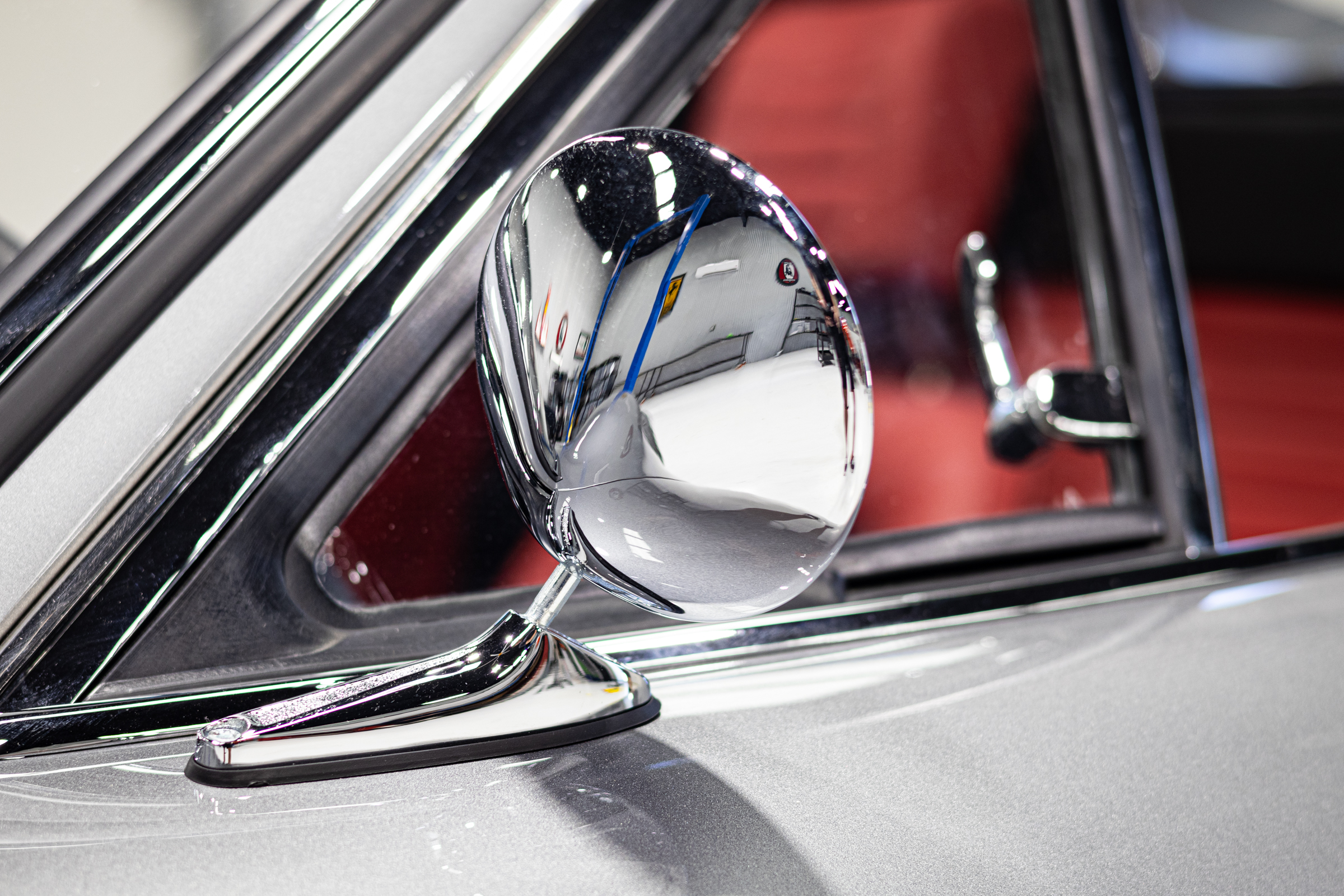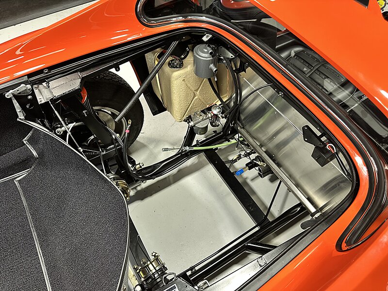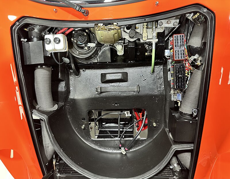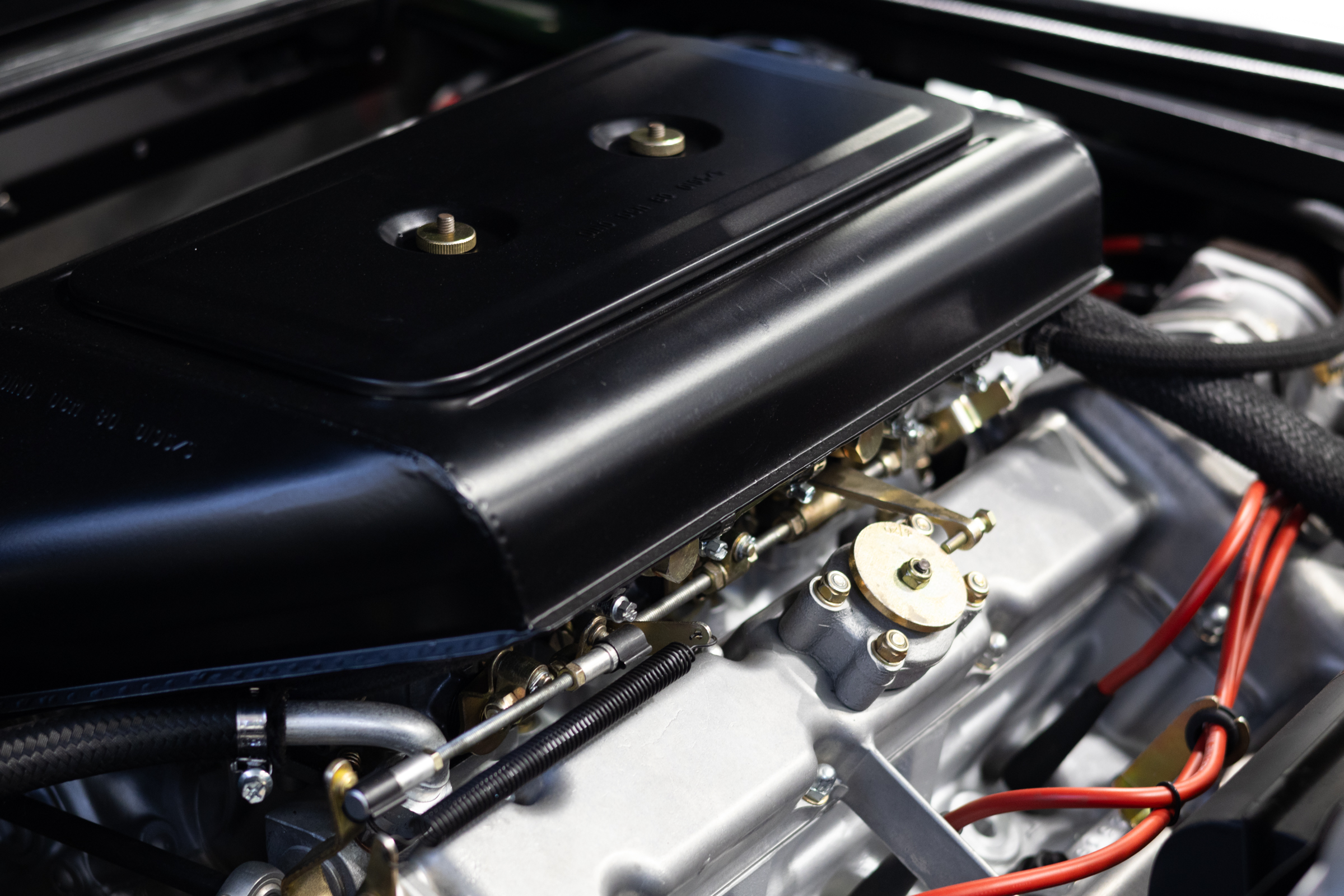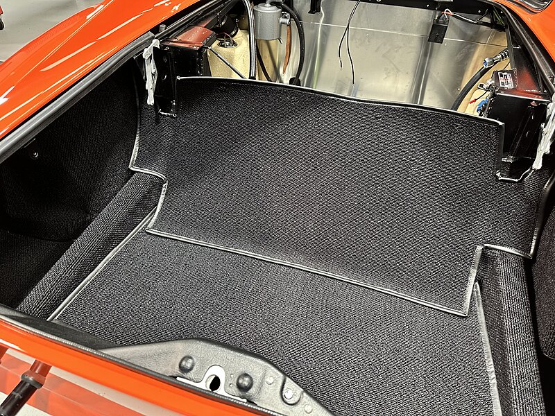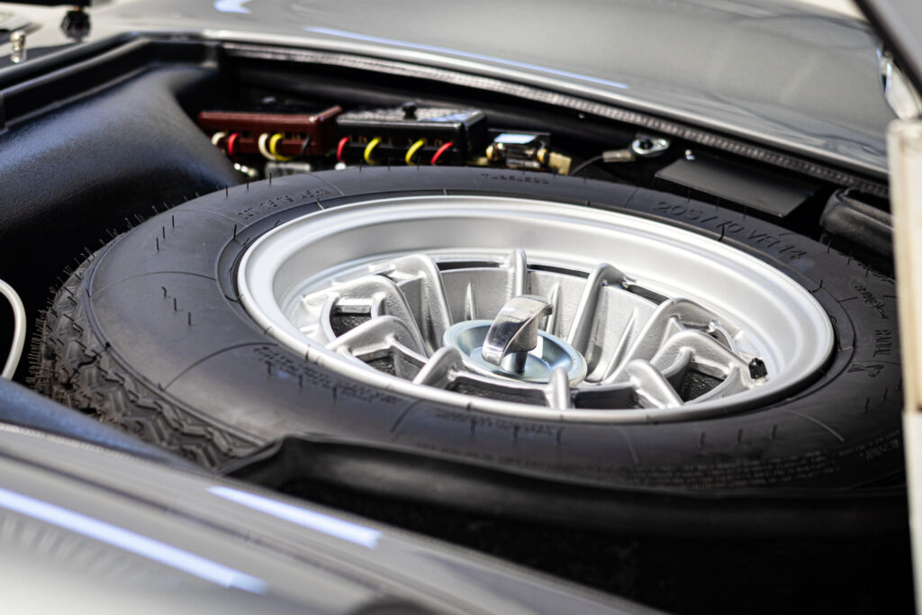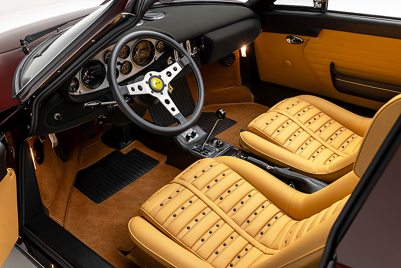 This one is another that got the euro treatment and was painted in Rosso Dino. We’ve done most of the reassembly, the wiring harness is all in place, the majority of the interior is done, and the engine is supposed to go back in the car in a week or two. It should be finished up soon. Don’t mind the tires, they were pulled off an old car!